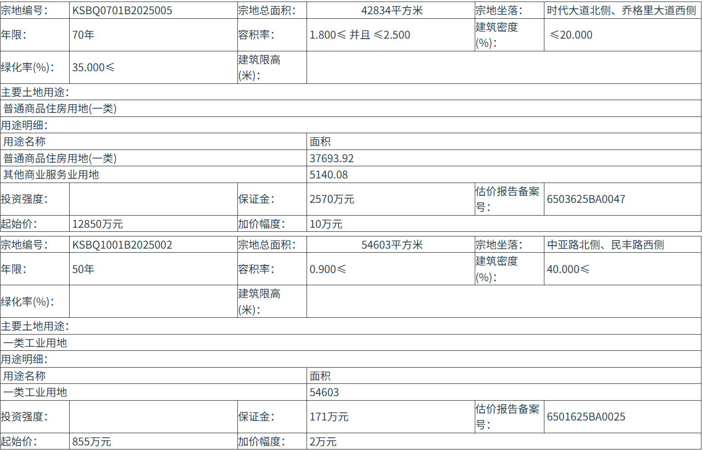 六、本次國有土地使用權(quán)拍賣活動定于在2025年11月20日 11時00分在喀什地區(qū)公共資源交易中心 進(jìn)行。