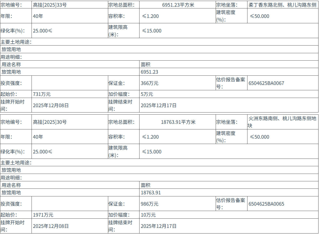 高掛[2025]30號 號地塊:2025年12月08日 10時00分 至 2025年12月17日 11時00分;