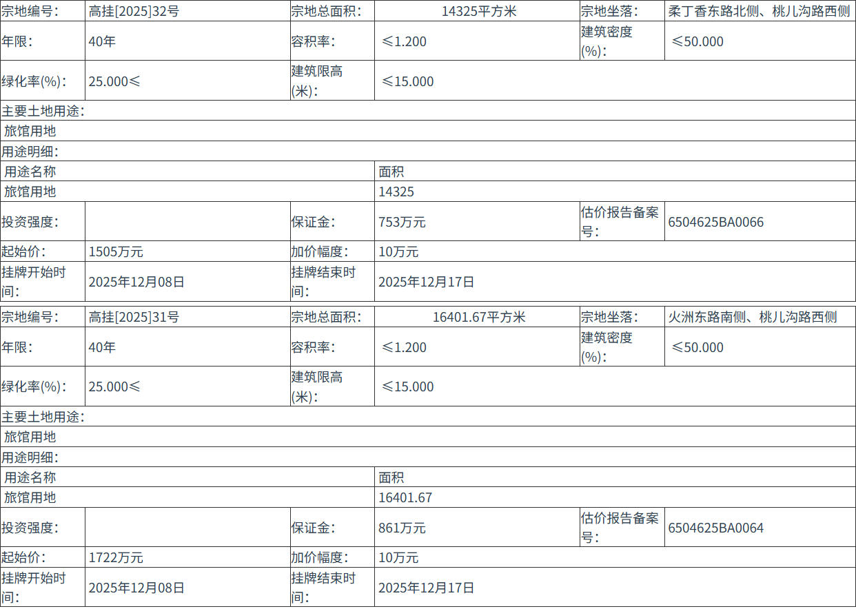 高掛[2025]31號 號地塊:2025年12月08日 10時00分 至 2025年12月17日 11時00分;