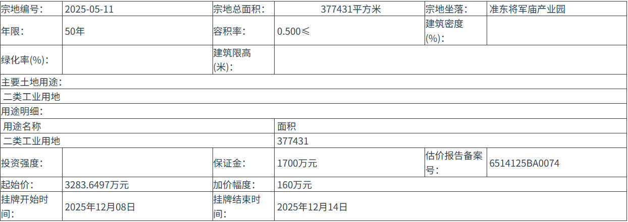2025-05-11 號地塊:2025年12月08日 12時00分 至 2025年12月14日 12時00分;