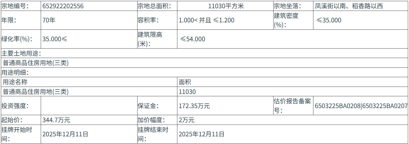 652922202553 號(hào)地塊:2025年12月11日 10時(shí)00分 至 2025年12月11日 14時(shí)00分;