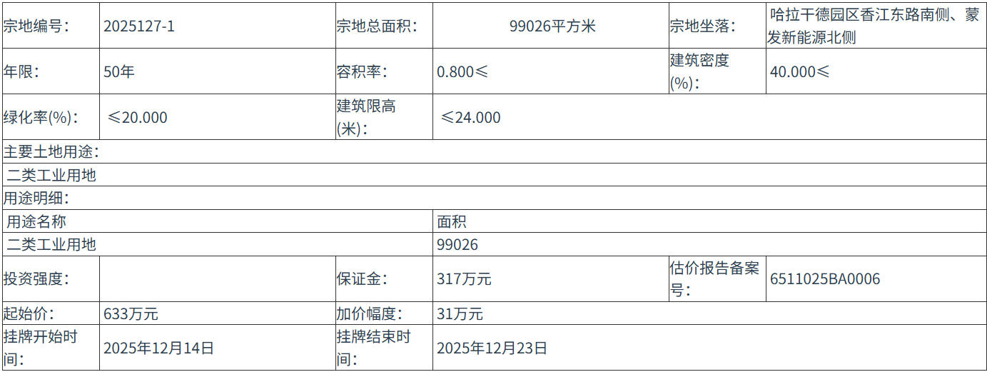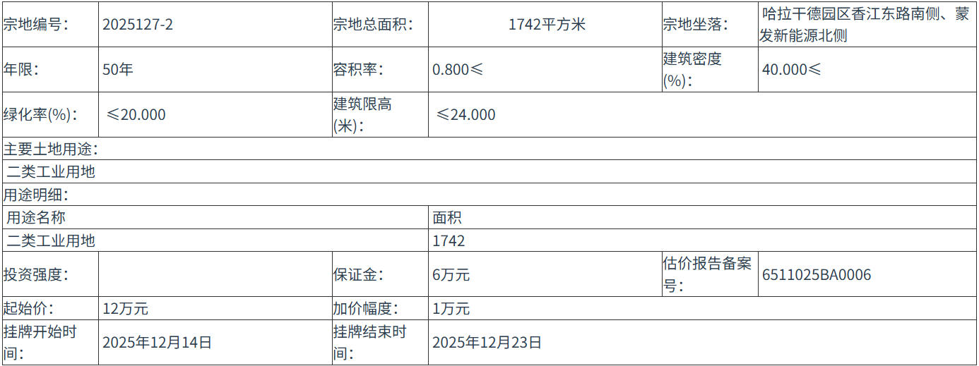2025127-2 號(hào)地塊:2025年12月14日 10時(shí)00分 至 2025年12月23日 18時(shí)00分;