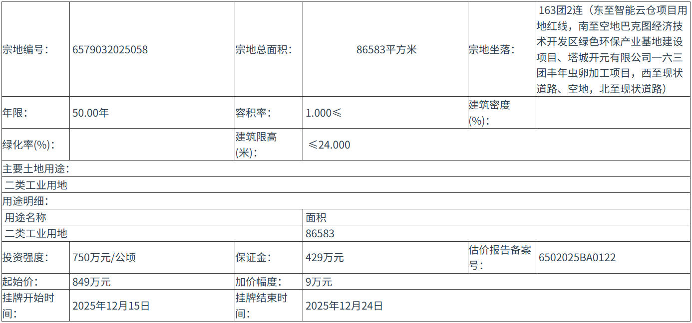 6579032025058 號地塊:2025年12月15日 12時00分 至 2025年12月24日 14時00分;