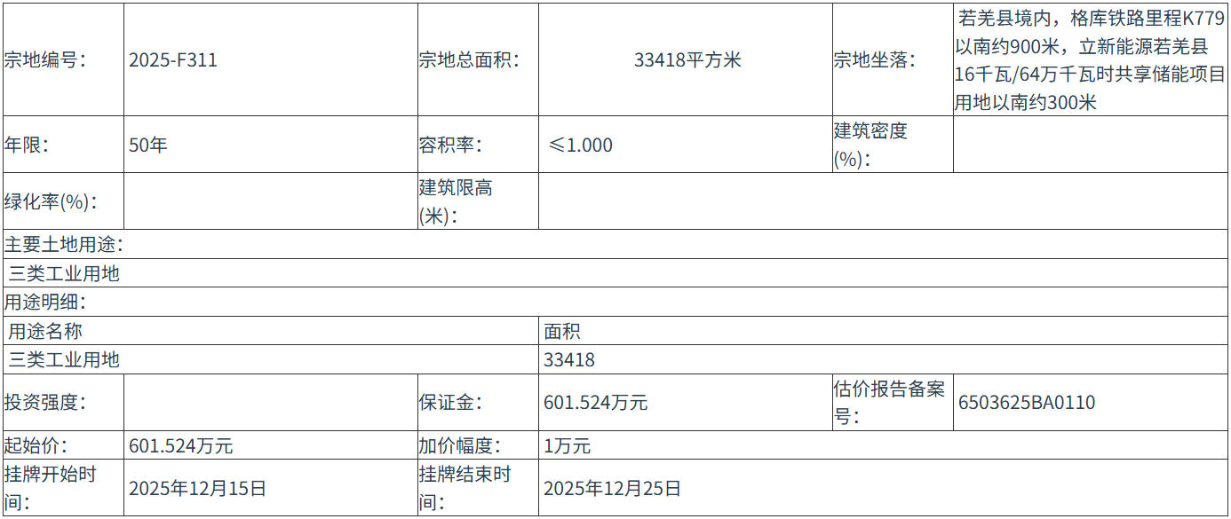 2025-F311 號地塊:2025年12月15日 10時00分 至 2025年12月25日 12時00分;