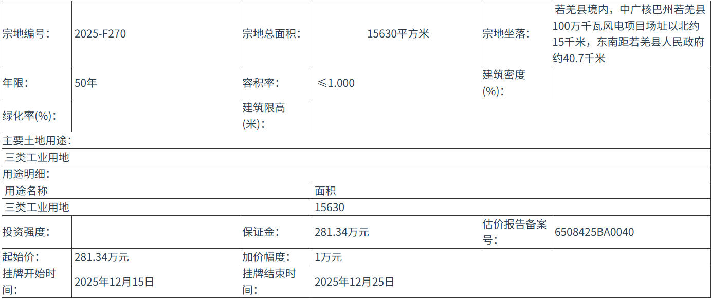 2025-F270 號地塊:2025年12月15日 10時00分 至 2025年12月25日 12時00分;